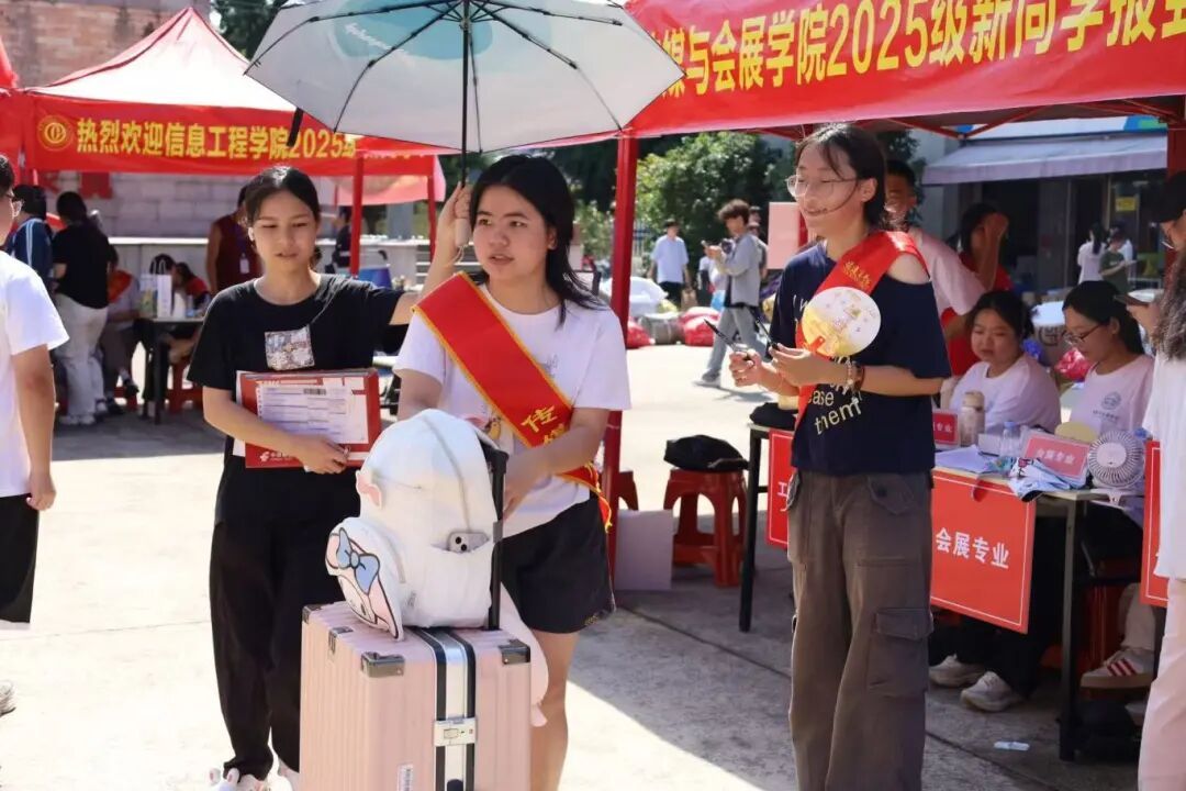 学院还组织多支志愿者小队,全流程引导新生,志愿者身着统一服装,主动帮提行李、引导报道与入住,还细致解答新生疑问,化解新生陌生感。学院同步落实暖心举措,在迎新大本营准备饮用水、遮阳帽,协助符合条件的新生顺利对接“绿色通道”。